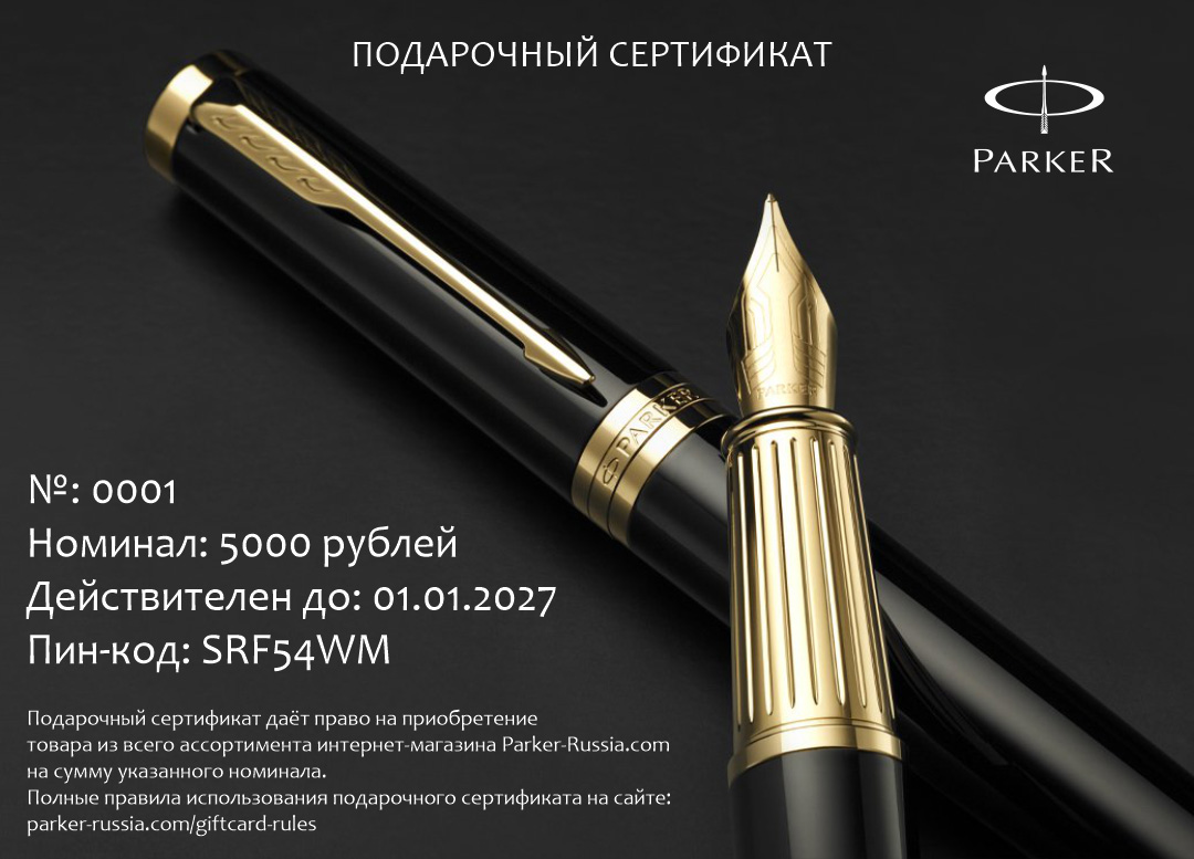 - Сертификат действует по всей нашей сети розничных магазинов и в интернет-магазине https://parker-russia.com/